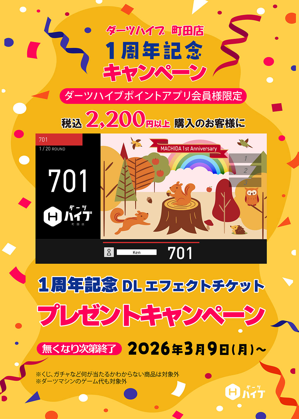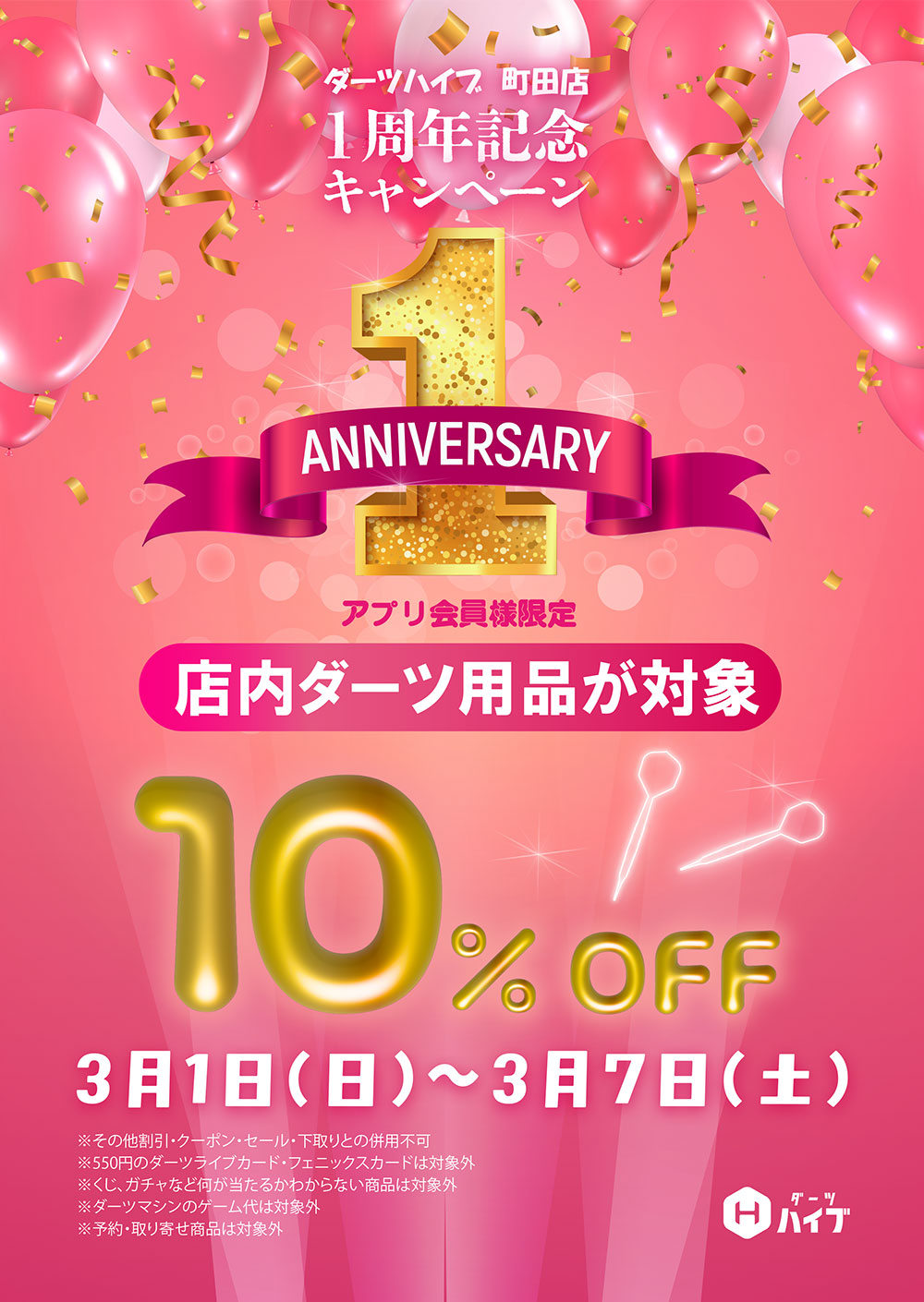 1周年を記念いたしまして、ダーツハイブ町田店では様々なキャンペーンを実施いたしますので、ぜひお越しください!