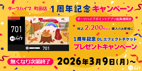 ダーツハイブ町田店1周年記念キャンペーン開催!